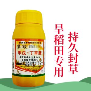 旱欢60%二甲戊灵-丁草胺乳油。旱稻田封闭除草,禾阔双封,安全高效!对自生小麦有效!